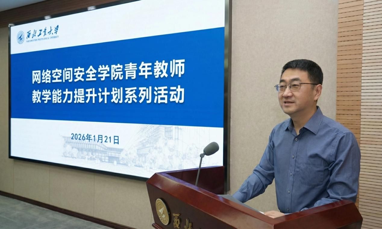 2026年1月21日,特邀国家级教学名师、中央网信办网络安全优秀教师西安电子科技大学李晖教授作专题报告。教务部部副部长、研究生院副院长王劲、学院领导及全体教师参加报告会,副院长刘志强教授主持了报告会。