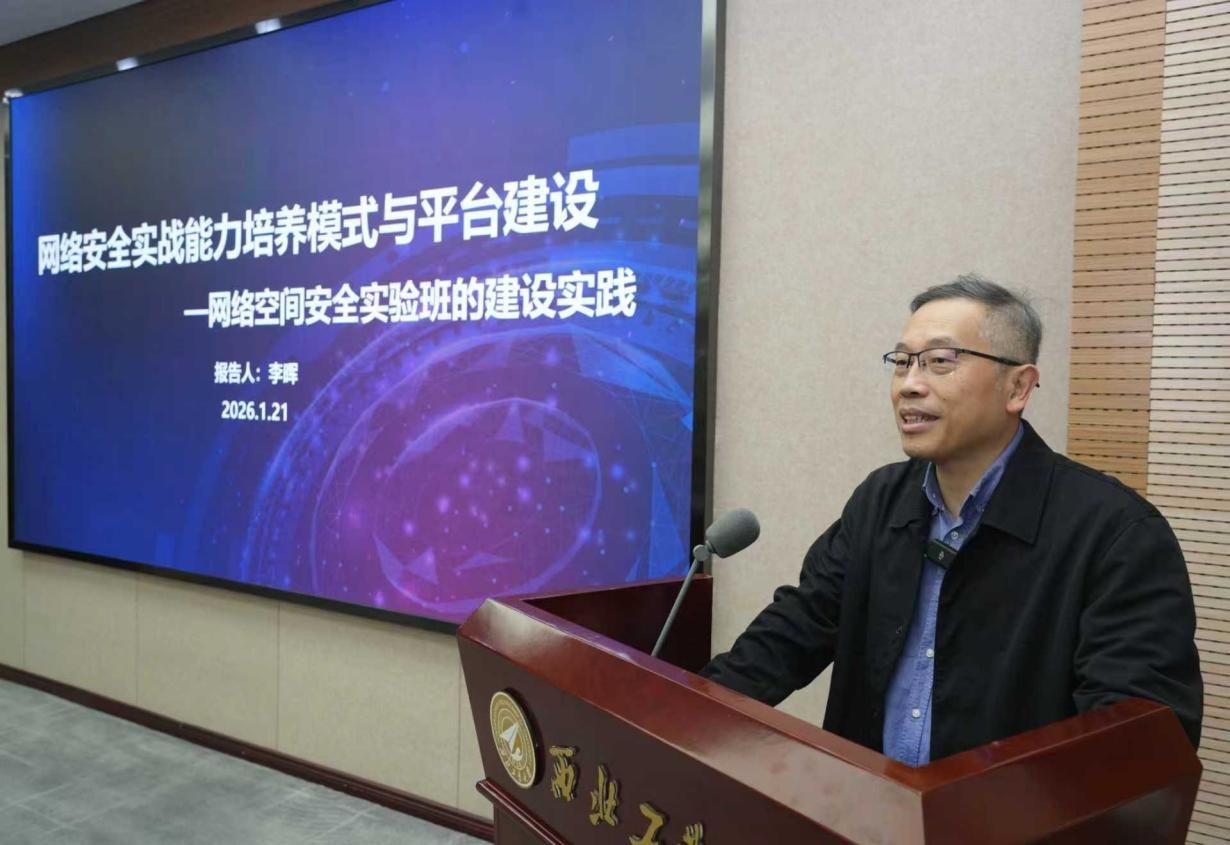 报告会上,李晖教授以“网络安全实战能力培养模式与平台建设——网络空间安全实验班的建设实践”为主题,系统分享了西安电子科技大学在网络安全人才培养方面的理念、模式与实践经验。他指出,作为国家一流网络安全学院建设示范项目高校,西工大与西电均高度重视学生实战能力的塑造,并将其视为网络安全人才培养的核心环节。