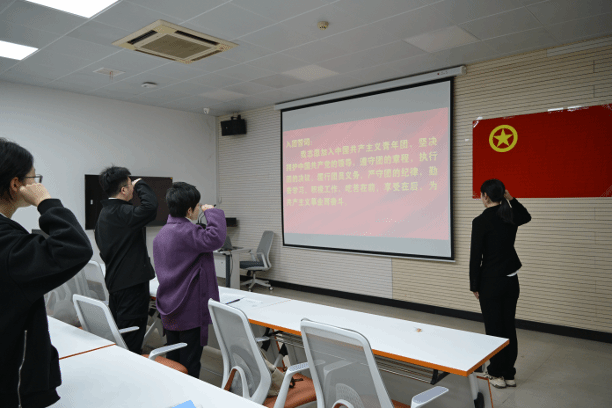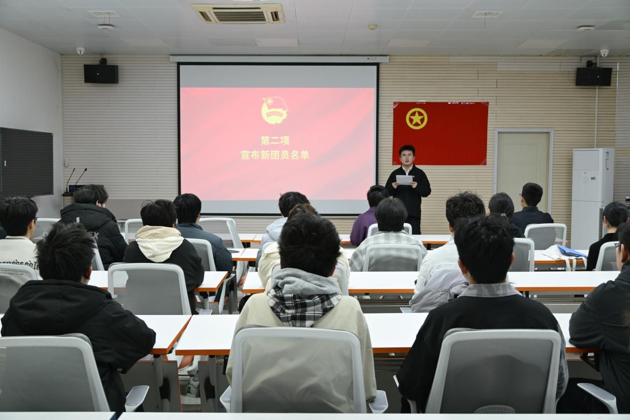 在学院楼C101-1教室举行2025年新发展团员入团仪式。学院党委副书记杜瑶、团委书记付强出席仪式,2025年新发展团员及入团积极分子参加活动,仪式由学院团委副书记董子瑜主持。