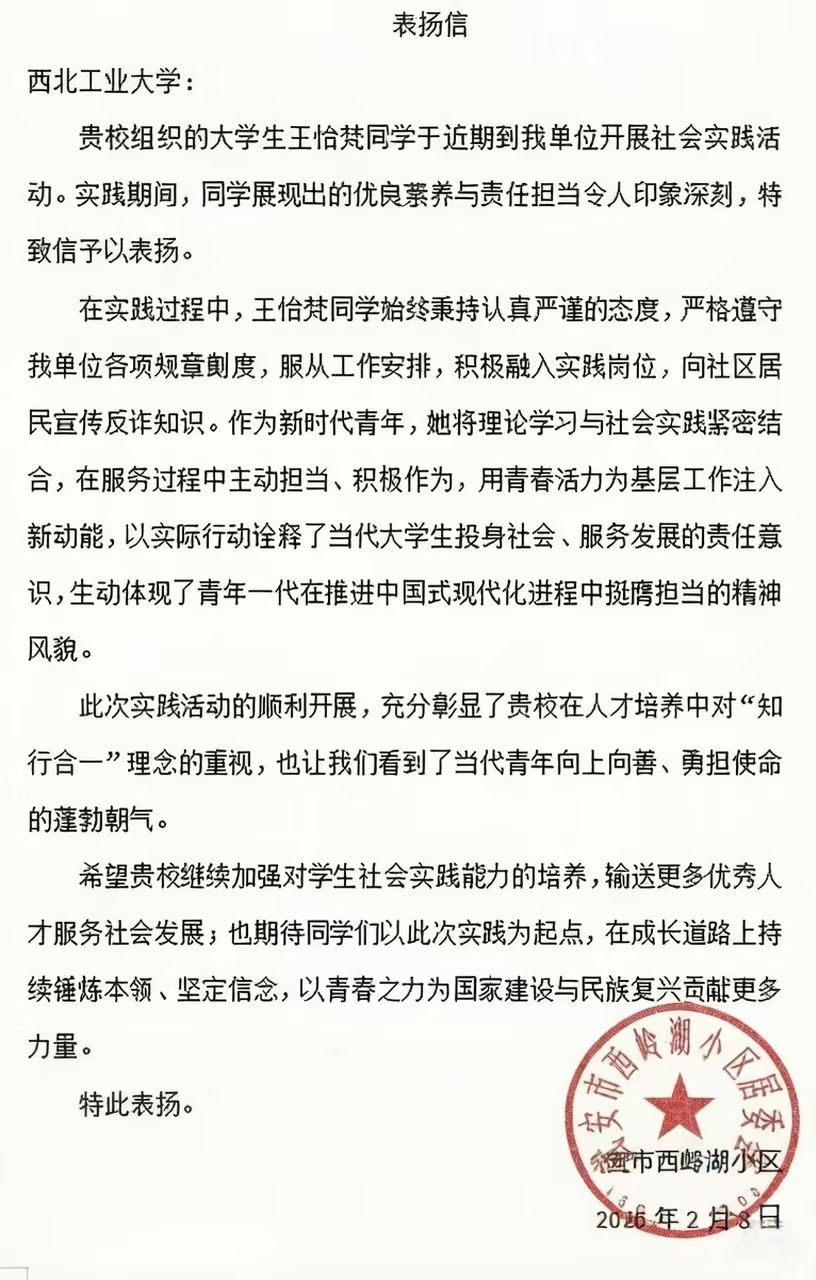 一场场接地气的宣讲,一次次心贴心的交流,换来的是群众的认可与自身的成长。系列反诈宣讲活动获得了属地社区、合作院校的高度肯定,实践队累计收到社区、学校发来的感谢信、表扬信多封;在小学开展专题宣讲期间,更收获了小学生亲笔书写的反诈感悟手写信,一字一句间,既是反诈知识入脑入心的生动印证,也是对队员们青春志愿行动的最好回馈。