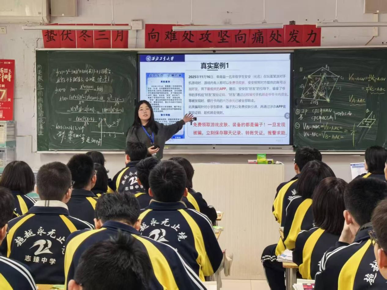 在高中课堂,队员们聚焦青少年群体高发的兼职刷单诈骗、游戏账号交易诈骗、虚假升学培训诈骗、校园贷陷阱、AI换脸冒充熟人诈骗等类型,以案例拆解、情景模拟、互动问答等鲜活形式,为高中生揭开电信诈骗的伪装,既讲解网络安全核心原理,也普及实用的防诈技巧与维权途径,引导同学们树立正确的网络安全观,筑牢青年群体反诈防诈的思想防线。