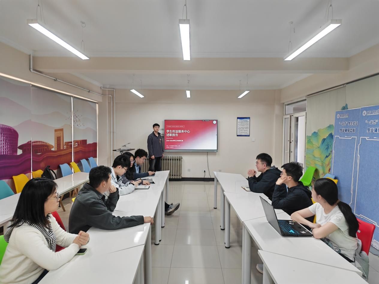 权益服务中心负责人紧扣“我为同学做实事”的工作宗旨,详细汇报了构建“校-院-班”三级权益反馈渠道、举办权益座谈会、开展班级联谊及权益知识普及等工作情况,切实聚焦同学急难愁盼问题,用实际行动践行服务初心。