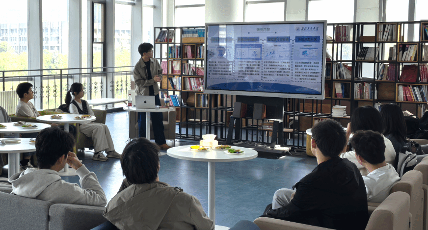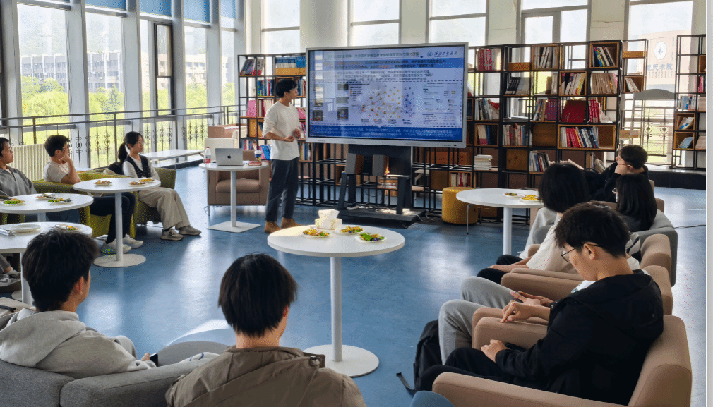 互动交流阶段,黄锦涛教授通过引导式提问,营造了轻松融洽、积极活跃的交流氛围。与会学生主动参与自我介绍,积极向老师和学长们咨询课题组研究领域、在研项目等相关情况。在自由讨论环节,同学们结合自身学习生活实际,就专业学习中的难点、科研入门的方法,以及研究生阶段可能面临的科研挑战等问题,与高年级学长展开深入探讨。老师与学长们结合自身经验,逐一给予耐心回应和针对性解答,为同学们的学术成长与发展规划提供了宝贵建议。