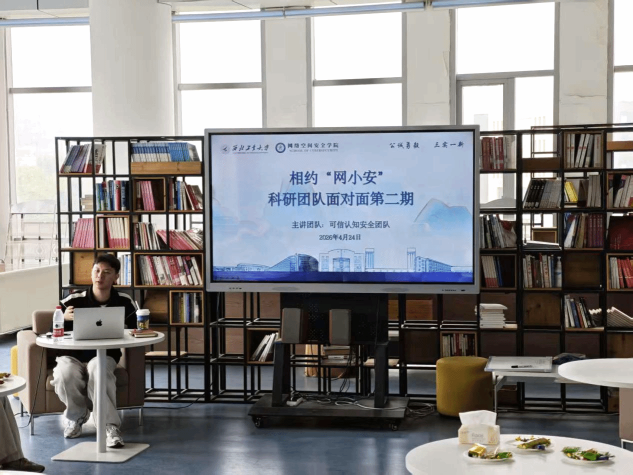 在长安校区开展第二期“相约‘网小安’——科研团队面对面”活动,邀请可信认知安全团队与同学们围绕团队科研方向与学生个人发展等问题展开深入交流,团队负责人黄锦涛教授、贾丹阳副教授以及学工主管方雪、专职辅导员陈松玲参加本次活动。