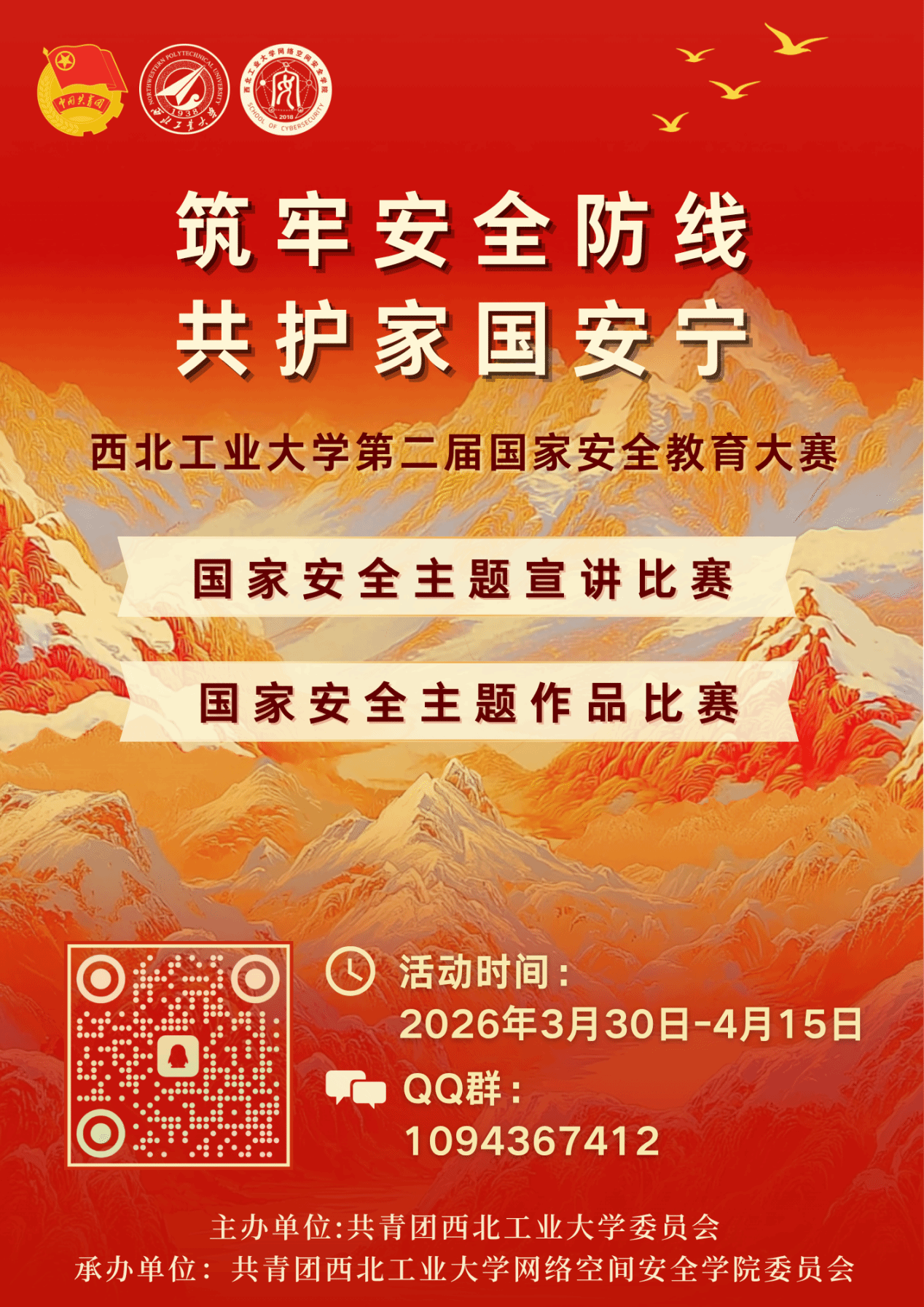 本次活动面向全体在校学生,主题涵盖国家安全20个重要方面,包括政治安全、军事安全、国土安全、经济安全、金融安全、文化安全、社会安全、科技安全、粮食安全、生态安全、资源安全、核安全、海外利益安全、太空安全、深海安全、极地安全、生物安全、人工智能安全、网络安全、数据安全。参赛选手可以结合自己兴趣和专业选择一个或多个方面为主题参赛,充分发挥自身优势,用创新的思维、丰富的知识和多样的形式,展现对国家安全的理解与思考。期待广大师生积极参与,在活动中提升国家安全意识,共筑国家安全防线。